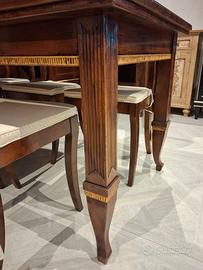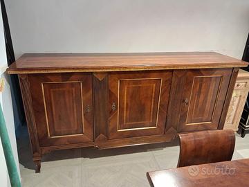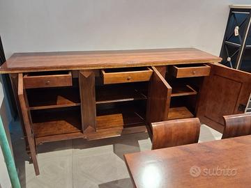 credenza 3 ante con 3 cassetti interni, tavolo cm 180 allungabile cm 280, 6 sedie.
