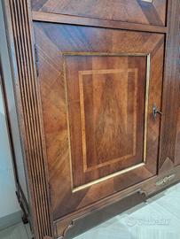 Sala nuova in piuma di noce composta da : vetrina 4 ante con 2 cassetti interni,