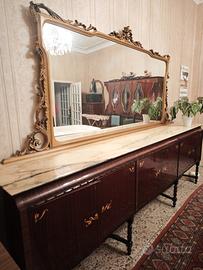 vendo sala intera mobile con specchio grande ,credenza e tavolo legno e marmo e 6 sedie