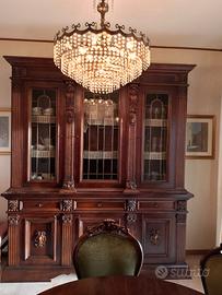 Imponente Vetrina/Credenza: Splendidamente lavorata con intagli artigianali, ante in vetro decorate e ampi vani contenitori inferiori. Un pezzo di alta ebanisteria.