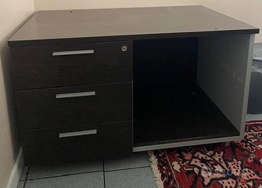 N.1 tavolo riunioni 280x115x73 150,00.= ,N.6 sedie nere stoffa 60,00.=, cad., N.1 madia 4 ante 180x47x95 170,00.=N.1 madia bassa 4 ante vetro 240x41x73 185,00.= e N.1 cassettiera e scomparto 90x55x54 40,00.=. tutto legno wengè.