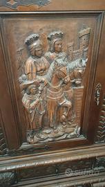 Mobile con 4 ante e 3 cassetti intarsiati a mano.