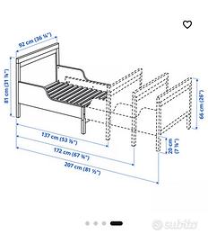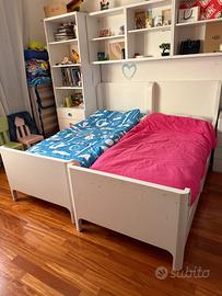Vendo coppia di lettini con doghe in legno (senza materassi). I lettini sono allungabili, quindi adatti sia per bambini che per adulti. Dimensioni massime: lunghezza 200 cm, larghezza 90 cm. Si vendono in coppia e lo smontaggio e trasporto sono a carico dell’acquirente