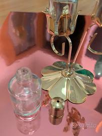 Piccola saliera dorata a forma di fiore. Un dettaglio elegante e originale, alta cm. 23, base cm.7 e boccetta di 3 cm.