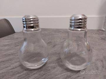 Saliera e Pepiera in vetro e acciaio inox 18/8 Marca APS Simpatica forma di lampadina Nuovi nella confezione originale, mai usati