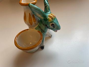 Saliera per sale e pepe da tavola in ceramica di Vietri con asinello. Mai usata e senza difetti (abbinabile al piattino in ceramica Vietri sempre sul mio profilo)