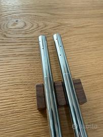 Coppia saliera e pepiera Design. Abracadabra by Ligne Roset. Acciaio inox con base in legno. Lunghezza bacchette: Cm 33 SOLO RITIRO A MANO