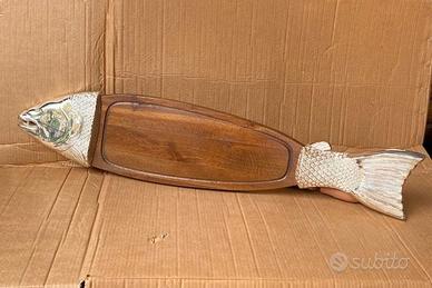 maxi tagliere in legno e metallo argentato per servire il salmone affumicato o marinato etc. Lungo 90 cm e largo 20cm. Mai utilizzato.
