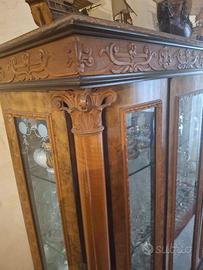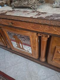 vendita salone composto da tavolo cristalliera e specchiera salone di 60 anni intarsiato a mano per amatori dell'antico e libreria con appendi cappotti vendita causa trasferimento zona Gregorio VIl