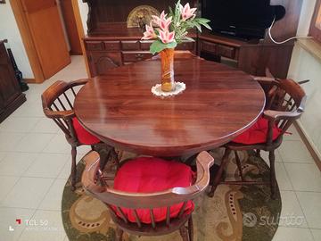Vendo salone completo stile old America angoliera con relativi laterali più tavolo allungabile con quattro sedie tutto in ottime condizioni legno massello. Contattarmi prima per sms.