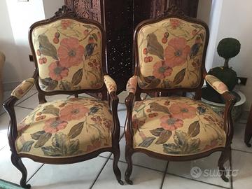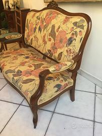 Splendido salottino in noce fine 800 composto da divanetto, 4 sedie e due poltroncine ( con rotelle originali).