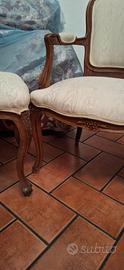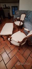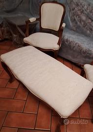 salottino antico vintage composto da 2 poltroncine e 1 puf (divanetto) tutto legno massello ben tenuto e ben conservato,imbottitura sana per ulteriori informazioni sono a disposizione,per la spedizione sono 3 pacchi voluminosi