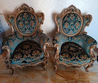 splendido set per arredamenti dallo stile classico , si adatta benissimo anche in ambienti più moderni. le poltrone presentano piccoli difetti facilmente riparabili, come si vede dall'ultima immagine. ritiro a carico dell'acquirente, primo piano con comodo parcheggio anche per mezzi grandi