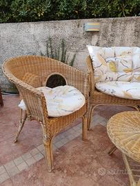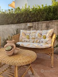Vendo elegante salottino da giardino in vimini naturale, perfetto per arredare terrazze, verande e spazi esterni con stile e comfort.