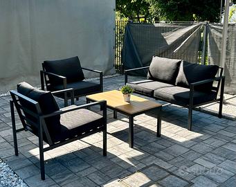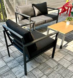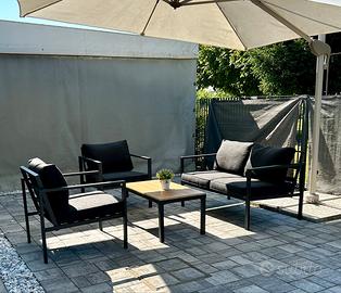 Vendo salotto / salottino da giardino relax in acciaio verniciato antracite con cuscini neri.