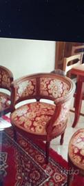 Vendo grazioso salottino fine '800-primi' 900 in buone condizioni,tappezzeria originale formato da 1 divano, 2 poltrone, 4 poltroncine, 1 tavolinetto e 1 specchio