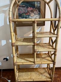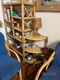 Vendo divanetto, due poltrone, un mobile/ libreria, un mobiletto angoliera, un carrello porta vivande, in bambu’,anche separatamente.Prezzo da concordare.