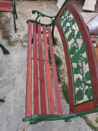 vecchio set da salottino in ghisa e legno in ottime condizioni. composto da 5 pezzi. 2 poltroncine e 2 panchine + 1 tavolino