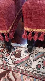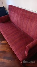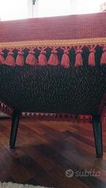 Salottino completo imbottito in velluto degrade rosso ciliegia con passamaneria decorativa con nappine . La tappezzeria comprese l'imbottitura interna e le molle sono state recentemente ristrutturate con l'aggiunta di comodi copribraccioli e copritestiere per una piu pratica pulizia.La misura del divano è di cm 160× cm 70 di profondità. Le poltrone misurano cm 60 × 70 di profondità. Nonostante le misure compatte, la seduta e la spalliera risultano essere molto comode e il modello lineare ma classico si inserisce bene in qualsiasi tipo di arredamento. Ritiro in zona Cosenza. Prezzo leggermente trattabile
