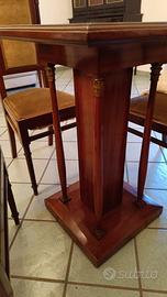 Salottino in Mogano Liberty ORIGINALE anni '30 composto da tavolino con colonnine, bronzi e cristallo come piano, n. 4 sedioline e n. 2 poltroncine in velluto, intatte. Stato eccellente.
