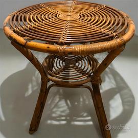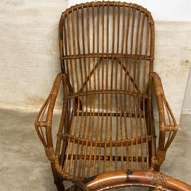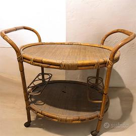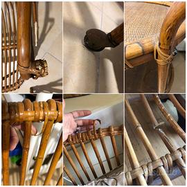 Vendesi splendido set vintage realizzati interamente in bambù e midollino corda, intrecciati a mano. Un pezzo autentico dal fascino senza tempo, perfetto per chi ama lo stile Boho-Chic, coloniale o il modernariato degli anni '60 e 70. Il set è composto da: 3 poltrone grandi 1 tavolino con doppio ripiano 1 carrello bar, ovale, con porta bottiglie sottostante Le poltrone presentano una struttura robusta e una linea ergonomica molto confortevole. Grazie al suo design leggero e ai materiali naturali, è ideale per arredare con calore un soggiorno, una camera da letto o una veranda coperta. Il set è tenuto in ottimo stato di conservazione, con qualche piccolo difetto che non ne compromette l'uso e la bellezza. Non spedisco, ritiro a domicilio, a Roma zona Spallette- Ponte galeria Prezzo regalo! Stile: Vintage, Retro, Scandinavo naturale.