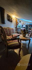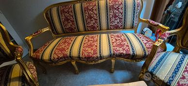 Stile Barocco in tessuto lavorato, divano, due poltrone e tavolino con piano in marmo
