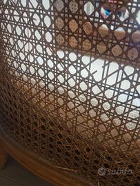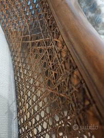 Salottino composto da due poltroncine e un divanetto 2 posti in legno e vimini, ottime condizioni. Solo la poltroncina della foto ha qualche danno laterale alla struttura in vimini (dall'esterno non si vede quasi niente). Le coperture in morbido tessuto, sia delle strutture che dei cuscini, sono state realizzate recentemente da un tappezziere. Preferirei vendere tutto insieme ma eventualmente si può concordare diversamente. Se interessati, posso aggiungere o inviare le foto del divano e altra poltrona