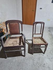 Salottino inizi 900 da restaurare composto da una poltrona a 3 posti, 2 poltrone ad un posto e 6 sedie. Le condizioni sono come quelle in foto per tutti i pezzi.