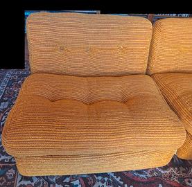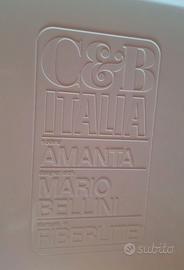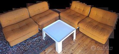Vendo quattro poltrone di design firmati Mario Bellini, rivestiti in velluto a coste multirighe "arancione anni Settanta". Struttura di color bianco. Piedi a sfera in gomma nera. Poltrona italiana modello Amanta disegnata da Mario Bellini e prodotta da C&B Italia a partire dal 1966, con imbottitura in velluto a coste e struttura in fibra di vetro, etichetta originale del produttore e stampa in rilievo. Premiato con il "Compasso d'Oro" nel 1970. Tutti i materiali sono originali dell'epoca, in ottime condizioni, scocche integre, piedi e tessuti originali. •Dimensioni: Altezza: 66 cm Larghezza: 79 cm Profondità: 79 cm •Altezza della seduta: 40 cm •Profondità della seduta: 57 cm Completa il salotto un tavolino bianco della stessa serie Amanta abbinato, dimensioni 70x70x35, lievemente segnato dal tempo. Prezzo indicato relativo all'intero salotto. Valutabili eventualmente anche offerte per la coppia di poltrone (con o senza tavolino). Non consegno, salotto visitabile e ritirabile in Genova, zona San Martino.