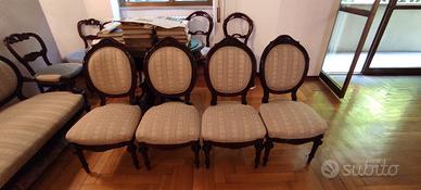 Tutti i pezzi sono originali d’epoca, in ottime condizioni generali, con struttura solida e tessuti ben conservati. Lo stile raffinato e le finiture in legno scuro lo rendono ideale per arredamenti classici, d’epoca o ambienti eleganti.
