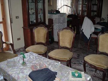 Vendo salotto antico, restaurato, in ottime condizioni, costituito da un divano, 2 poltrone e 4 sedie. Sono a disposizione per ulteriori chiarimenti.
