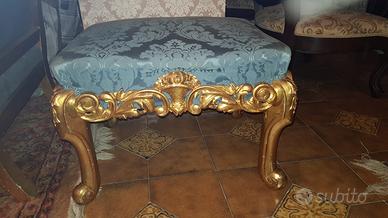 Salotto anno 1930 stile Luigi XV acquistato a Firenze ditta Artigiani Mobilieri Omero Papini. È Tutto in foglia oro il tessuto damascato color blu oltremare é originale l'imbottitura di tutti i cuscini delle sedute sono in vera piuma ed originali il salotto è composto da: