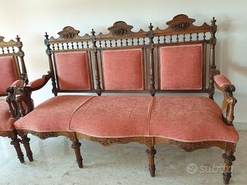 Salotto antico, in ottime condizioni, composto da divano e due poltrone, fabbricato in Siria, venduto in Libano e trasportato a Nazareth in Palestina verso la fine 1800, trasportato in Italia nel 1960. Restaurato di nuovo nel 2006. Ottimo pezzo per Ambasciate, Musei, Moschee, Chiese o ristoranti Orientali o anche per una residenza privata. Misure divano 170 x 70 cm. Poltrona 100 x 70cm. Si prende in considerazione qualsiasia offerta. Spedizione a carico dell'acquirente. Ricavato verra internamente destinato agli aiuti umanitari ai civil di Gaza attraverso ong internazionali
