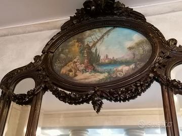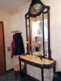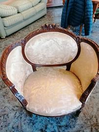 Vendesi salotto stile Luigi Filippo fine 800 in noce nazionale,Ritapezzato con tessuto Rubelli. Composto da divano,due poltrone,quattro sedie,due pouf, specchiera, toilette con specchio, tavolino e treppiedi.Euro 5.000 tratt.
