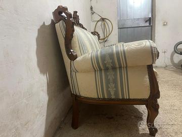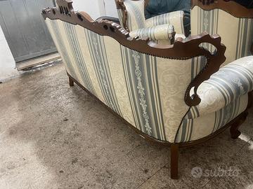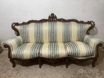 Salotto antico in ottime condizioni . Legno in noce , tappezzeria originale in ottime condizioni . Composto da : Divano 3 posti , Due poltrone e Due sedie . Possibilità di visionarli tramite appuntamento . Chiamate o WhatsApp: 3271240903