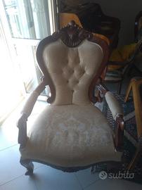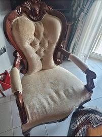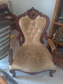Divano e due poltrone, tipologia Napoli, in buono stato di conservazione, legno di mogano massello.