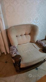 Salotto stile atte povera con struttura in legno composto da divano due posti e due poltrone. Da rifare la tappezzeria.