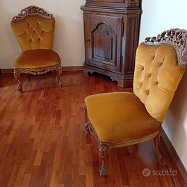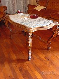 Salotto completo di divano tre posti, due poltrone, due poltroncine e un tavolo con piano in marmo.