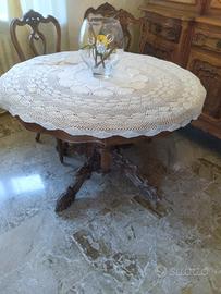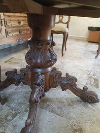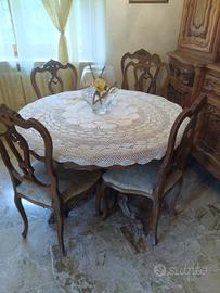 salotto in stile barocco piemontese in noce realizzato a mano. mobile a 5 ante, 6 sedie, tavolo allungabile e mobiletto complementare. Volendolo lampadario in stile.