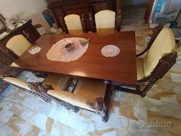 Vendesi intero salotto in legno composto da credenza , tavolo con 6 sedie e madia con specchio; ottime condizioni;