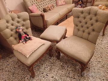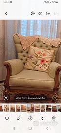 salotto completo 7 pezzi in damasco più tavolino in marmo