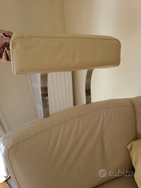 Salotto Chateau D'Ax in vera pelle compreso di puff in alcantara e cuscini in vera pelle +poggia testa in vera pelle. Misure Lunghezza cm 2,60 profondità maggiore cm 1,20 quella più piccola.