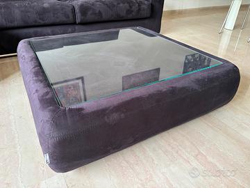 - Pouf nero quadrato con ripiano in vetro e bordi in simil alcantara: 95 cm x lato