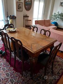 Per cambio abitazione vendo sala stile Chippendale appartenuta ai nonni. Condizioni ottime Tavolo allungabile fino a 10 posti. Seì sedie e due mobili buffet 700 € o proposta di acquisto