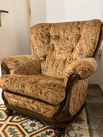 Vendesi elegante salotto in stile classico composto da: • Divano 3 posti • 2 poltrone singole abbinate Il set presenta una struttura solida in legno con dettagli curati e imbottitura molto confortevole. Il rivestimento è in tessuto con fantasia floreale sui toni caldi del beige/marrone, ideale per ambienti classici o rustici. ✅ Condizioni: buone, senza rotture strutturali ✅ Seduta comoda e ancora ben sostenuta ✅ Perfetto per casa, tavernetta o casa vacanze Il salotto è subito utilizzabile, ma volendo si presta anche a un eventuale rinnovo (tipo copridivano o rifoderatura per stile più moderno). 📍 Ritiro a mano a Tricase (LE)