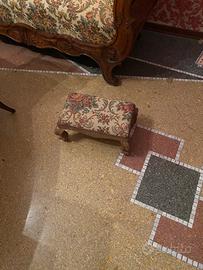 Salotto completo di divano, poggiapiedi e poltrona in legno e tessuto stle fine 800 inizio 900