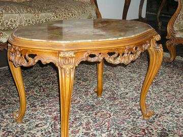 Vendo salotto completo composto da: divano 3 posti, n.2 poltrone, n.2 poltroncine, n.1 tavolino ovale con piano in pietra onice. Comprato negli anni 70, non è mai stato utilizzato ma solo per arredamento in una sala ampia. Per amanti del stile retrò, disponibili foto su richiesta per i particolari. Spedizione a carico dell'acquirente, no spedizione con corriere.