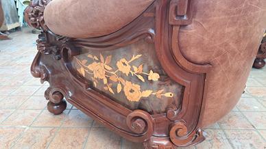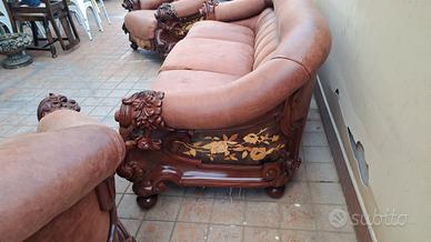Salotto anni 70 in mogano massello riccamente intarsiato e intagliato ottime condizioni, composto da divano 3 posti e 2 poltrone. Divano misura 210x90 altezza schienale 74 mentre le poltrone 90x90 h 74...M&P Antichità siamo un negozio specializzato in antiquariato vintage e shabby vendita al dettaglio e all ingrosso scarichi settimanali oltre 500 articoli in negozio, abbiamo una vasta scelta di como comodini tolette armadi letti vetrine vetrinette credenze servanti angoliere librerie tavoli tavolinetti sedie poltrone poltroncine divani lampade lampadari tappeti scrivanie scrittoi secretere ribaltine consolle quadri cornici specchi cassapanche bauli oggettistica varia idee regalo e molto altro ci troviamo a Roma zona Castelverde via Massa San giuliano 26b POSSIBILITÀ DI CONSEGNA E SPEDIZIONE IN TUTTA ITALIA PER INFO LUCA