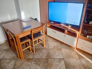 parete salotto lunga due metri e settanta completa di tavolo apribile a libro da 90x90 e diventa 180 x 90 con quattro sedie tutto in buonissimo stato cedo al prezzo di €250 no perdi tempo