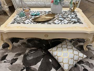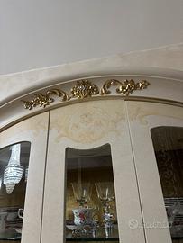Completo salotto con vetrina e tavolo basso decape e decori in oro e strass tutto in ottimo stato